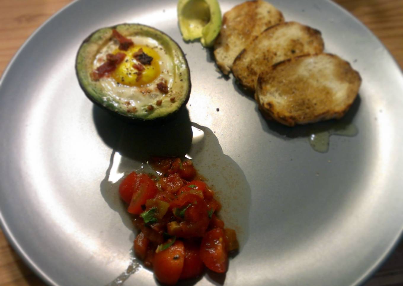 - To eat, scoop flesh of baked avocado and egg onto toast. Top with salsa as desired.