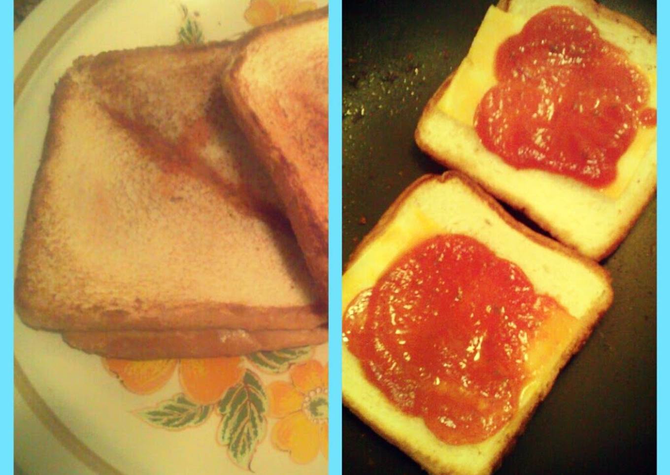 - Flip one slice of bread on top of the other. Make sure the bread is grilled good and golden. Enjoy! :)